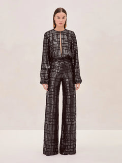 Introducing the Zano Pant—a sleek and striking piece that brings an elevated edge to evening dressing. These high-waisted pants feature a flattering, tailored fit that flows into a subtle flare, creating a lengthening silhouette. Covered in shimmering sequins, the Zano Pant adds a touch of bold sophistication to any outfit. Designed to pair perfectly with the Reis Sequin Top.