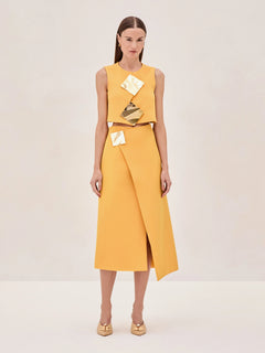 The Zilai Skirt boasts a sharp, tailored design with a high waist, lending a classic yet modern aesthetic. Adorned with a striking metallic geometric embellishment, the Zilai Skirt exudes a contemporary edge that perfectly complements its minimalist style. Coordinate it with the Athens Top for a cohesive look.