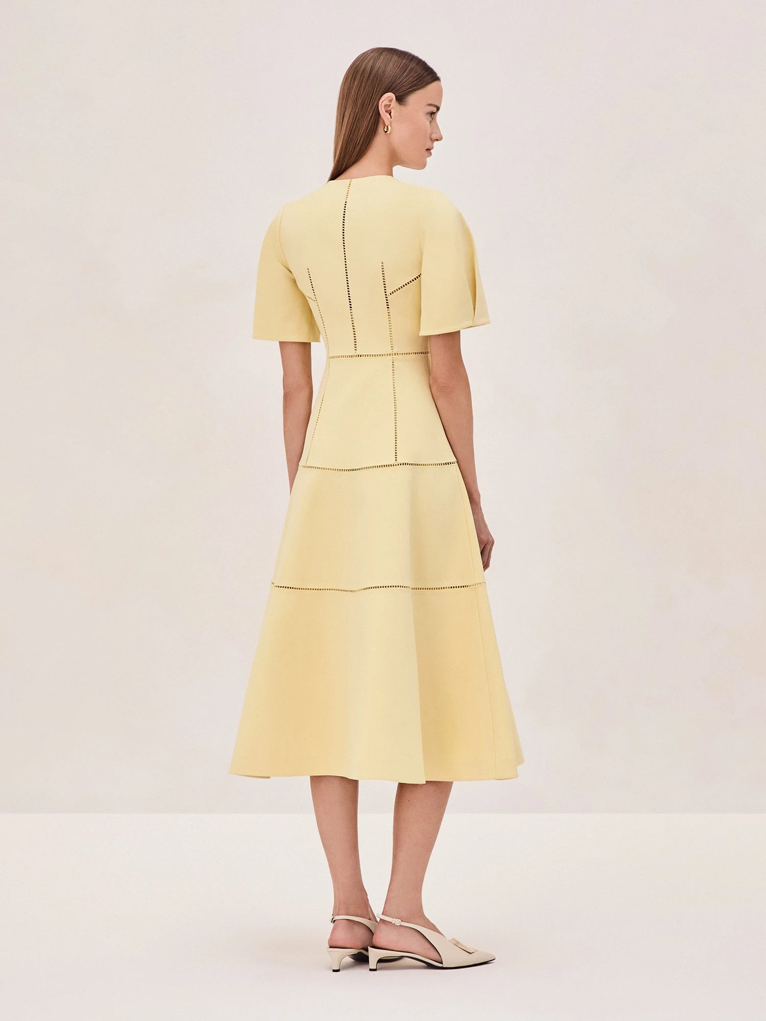 Introducing the Valry Dress, where modern minimalism meets effortless sophistication. This dress is all about clean lines and understated elegance, featuring subtle stitched detailing that adds depth and texture to its sleek silhouette. The structured fit and flared skirt create a flattering shape, while the zipper front gives it a contemporary edge.