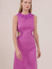 Leda Dress is a sleeveless midi dress with beading at the neckline as well as cutout detail.