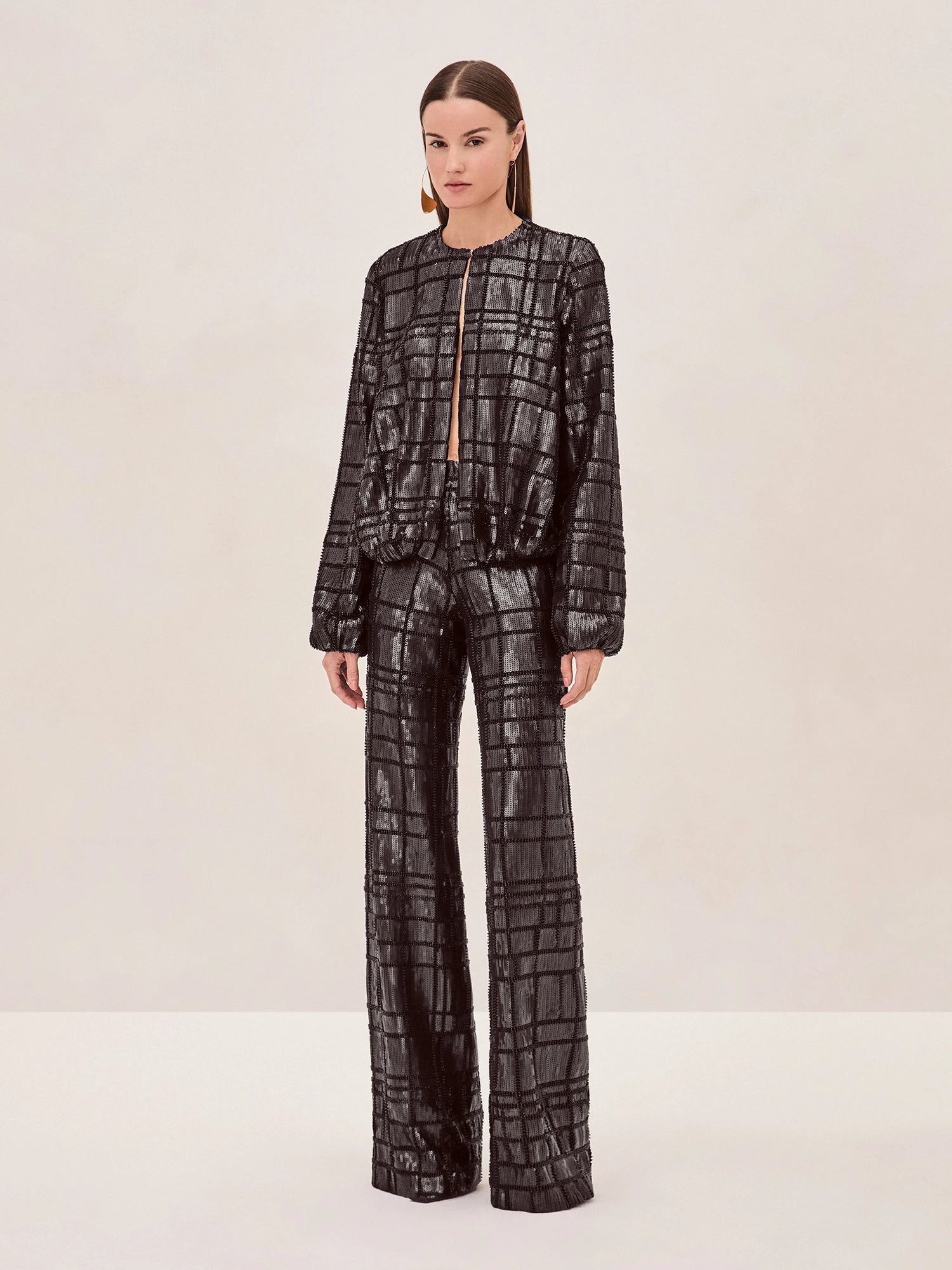Introducing the Reis Sequin Top—a statement in modern luxury and effortless glamour. This top features a relaxed silhouette with a deep neckline and softly draped sleeves, all adorned in shimmering sequins that catch the light with every move. Perfectly designed to pair with the Zano Pant