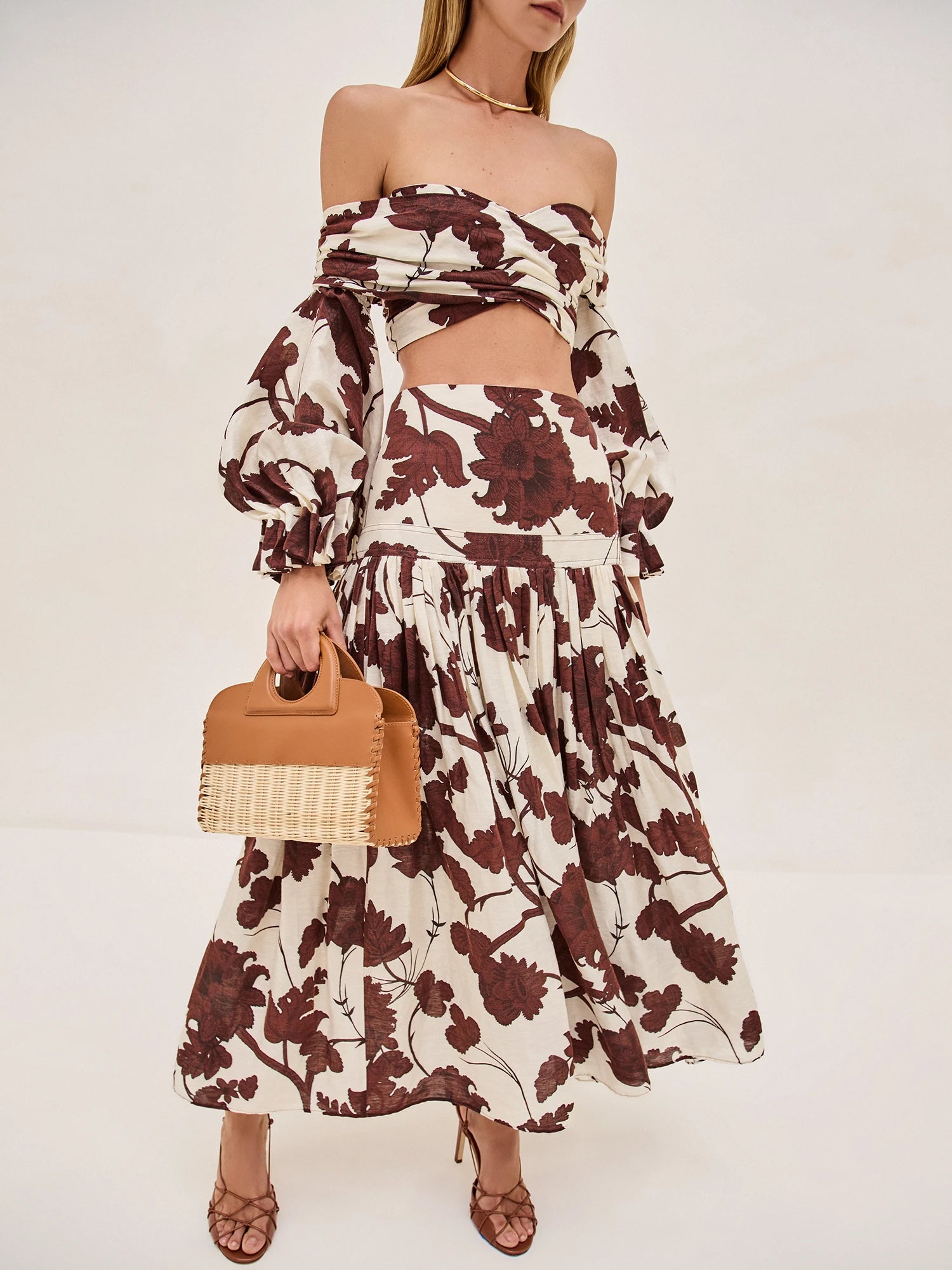 The Napoli Skirt is a flowy, feminine piece that makes a statement. With its vibrant brown floral print and tiered design, it moves beautifully and adds an effortless touch of elegance to your look. Pair it back with the Trisha Top for a stunning, coordinated outfit.