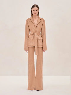 Introducing the Byers Vegan Suede Pant. Featuring a high-waisted, straight-leg silhouette, the Byers Pant delivers a sleek and flattering fit that elongates the legs. Designed to pair seamlessly with the Lazlo Jacket.