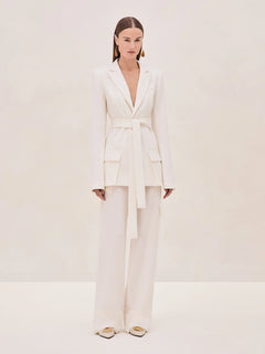 Introducing the Justen Pants. These wide-leg trousers offer a sophisticated silhouette that flows effortlessly, while the tailored design ensures a flattering fit. The standout feature is the utility-inspired pockets, adding a contemporary twist to this timeless style. Pair the Justen Pants with the Bartan Jacket for a cohesive and powerful look that’s perfect for any occasion.