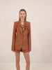 Altan Jacket is a tailored blazer with a deep V neckline and sculptural bow detail, paired with the Xander Short.