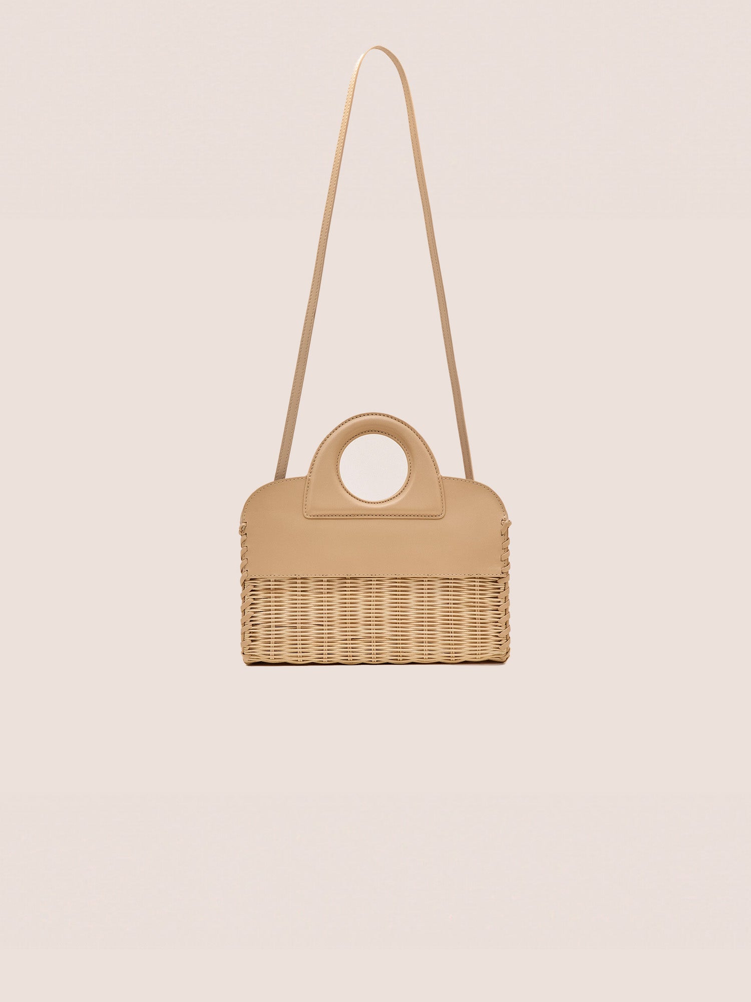 The Bianca hand bag is a handwoven rattan bag featuring an interior leather pouch and a detachable crossbody strap, it seamlessly blends style and versatility for any occasion.