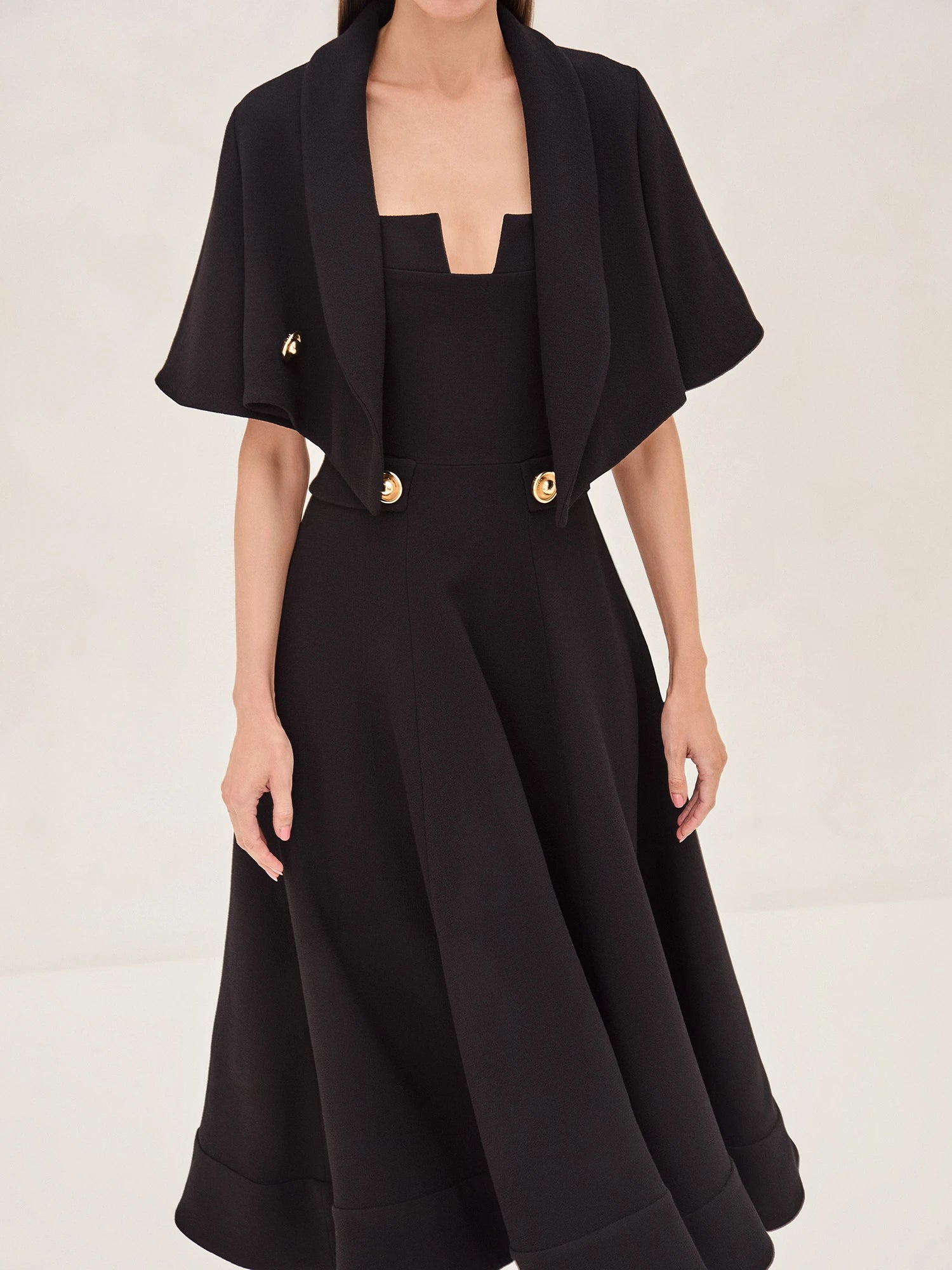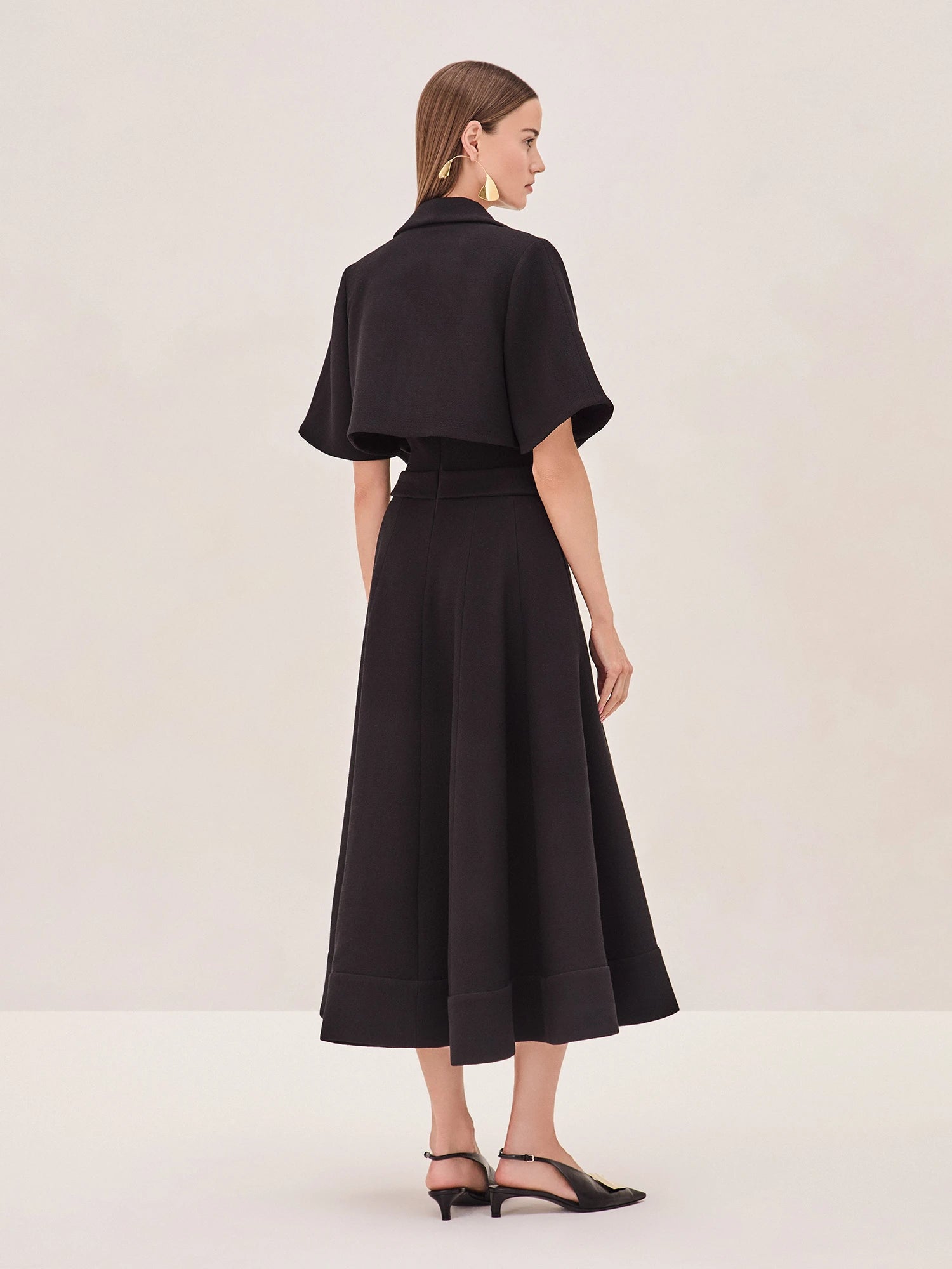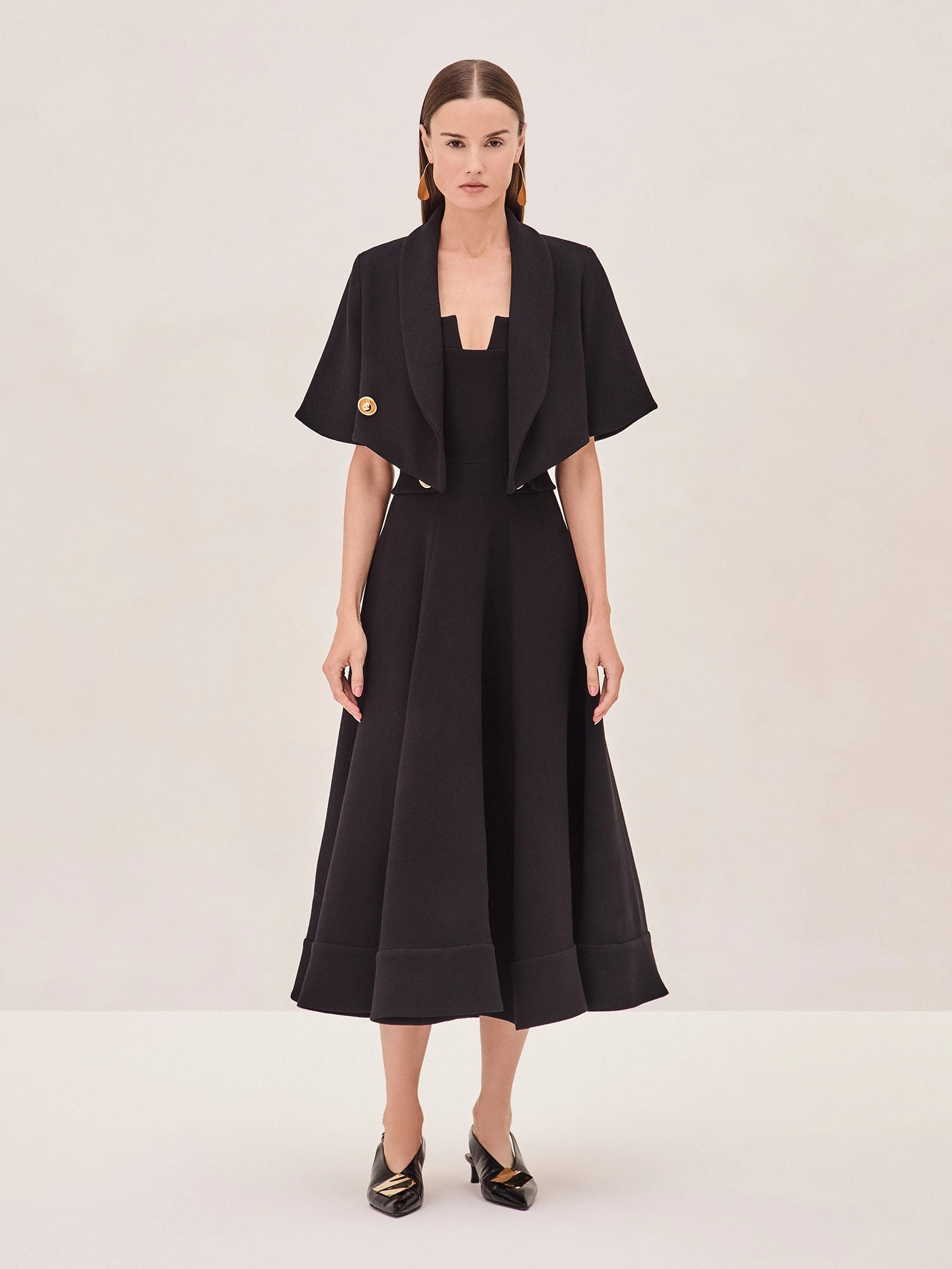Introducing the Cabot Jacket, a perfect layering piece that adds a touch of sophistication to any outfit. With its tailored fit and structured silhouette, this jacket effortlessly elevates your look. The clean lines and open front design make it versatile, while the draped sleeves add a modern twist. Pair the Cabot Jacket with the Fiore Dress for a polished, put-together ensemble.