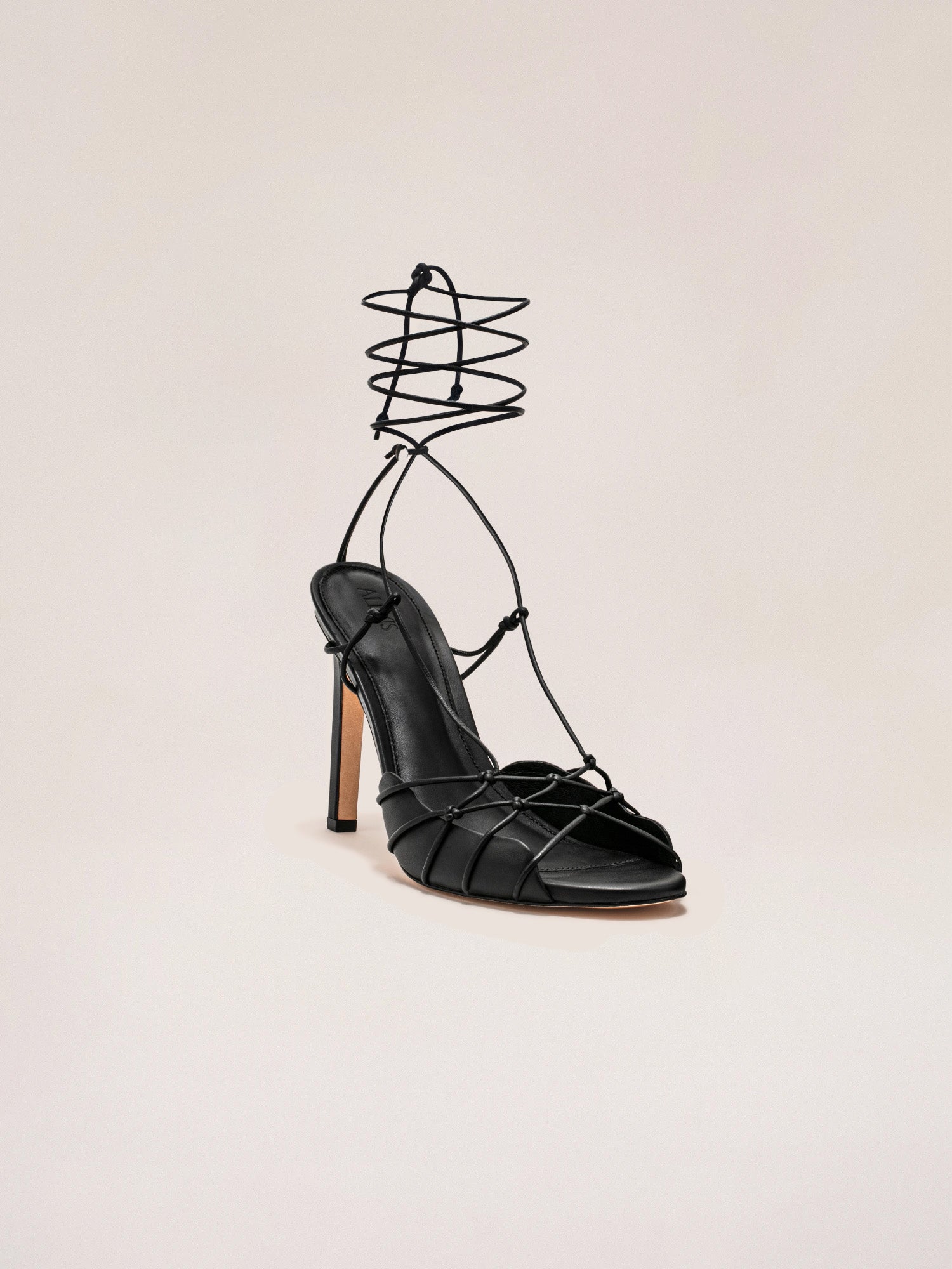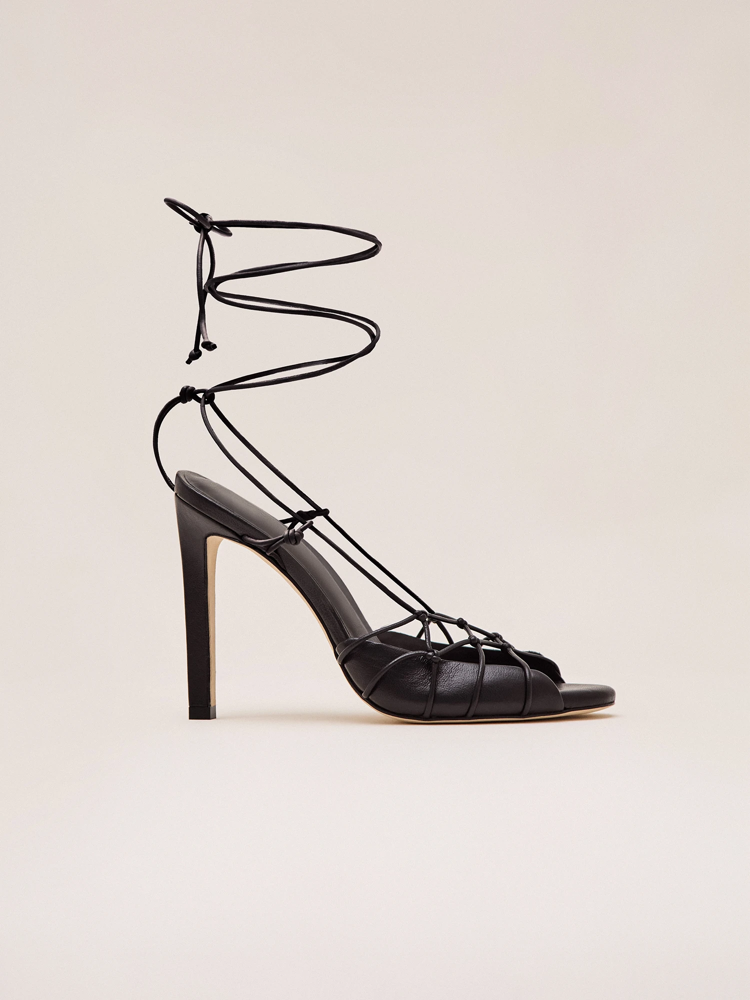The Collette Sandal features a refined strappy design with delicate leather laces that wrap gracefully around the ankle for a customizable fit. Elevated by a sleek stiletto heel, it exudes a perfect balance of modern elegance and timeless sophistication.