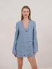 Eulia Dress is a long-sleeve mini dress featuring an eyelet neckline and geometric cutout detailing.