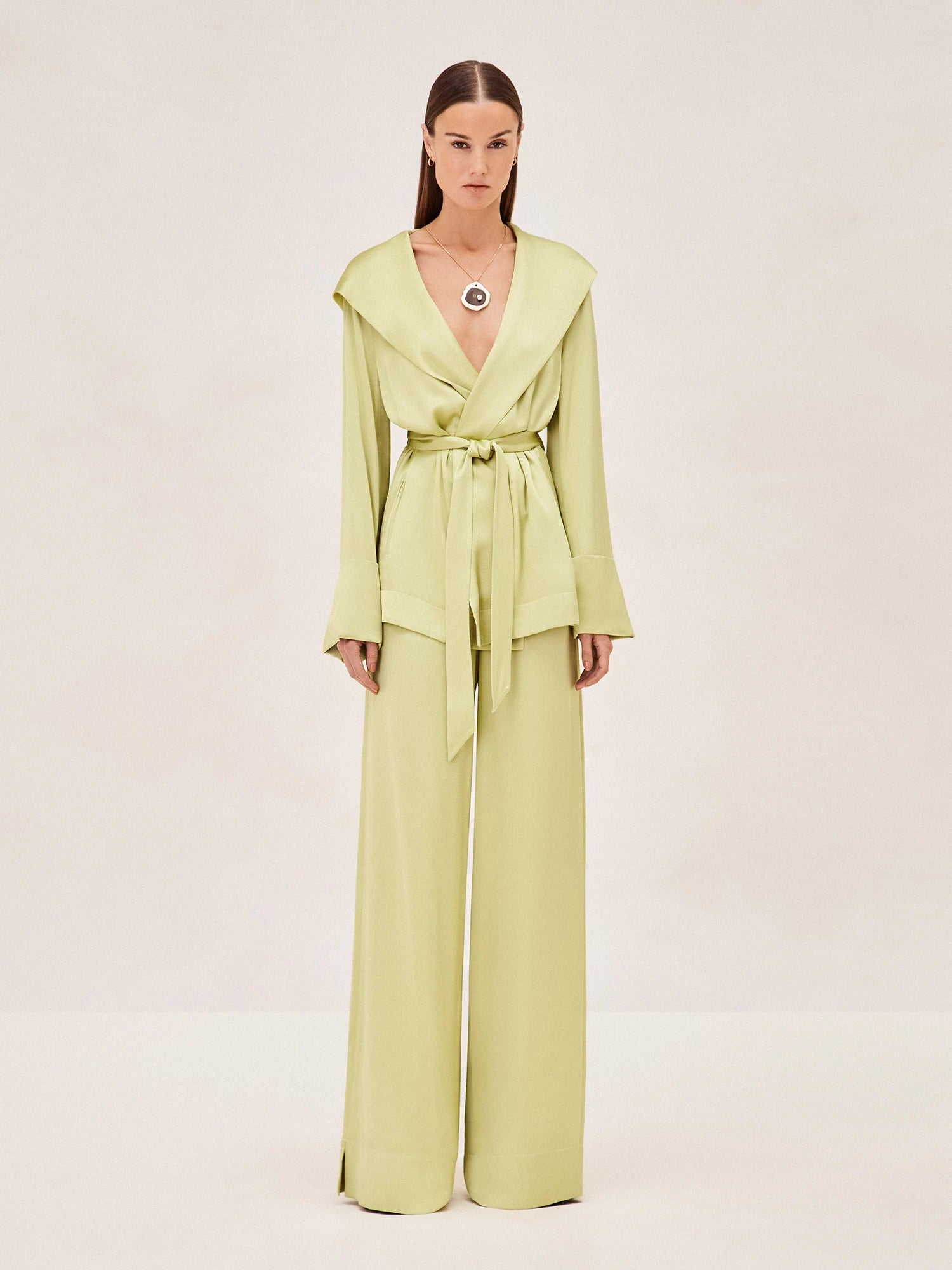 The Mecca Hooded Top is a chic embodiment of effortless sophistication. Crafted from luxurious viscose, it features a unique hooded design and a tie-waist belt for a flattering silhouette. The sleek lines and subtle sheen of this top make it the perfect piece for both formal and casual occasions. For a full look pair back to the Legacy Pants.
