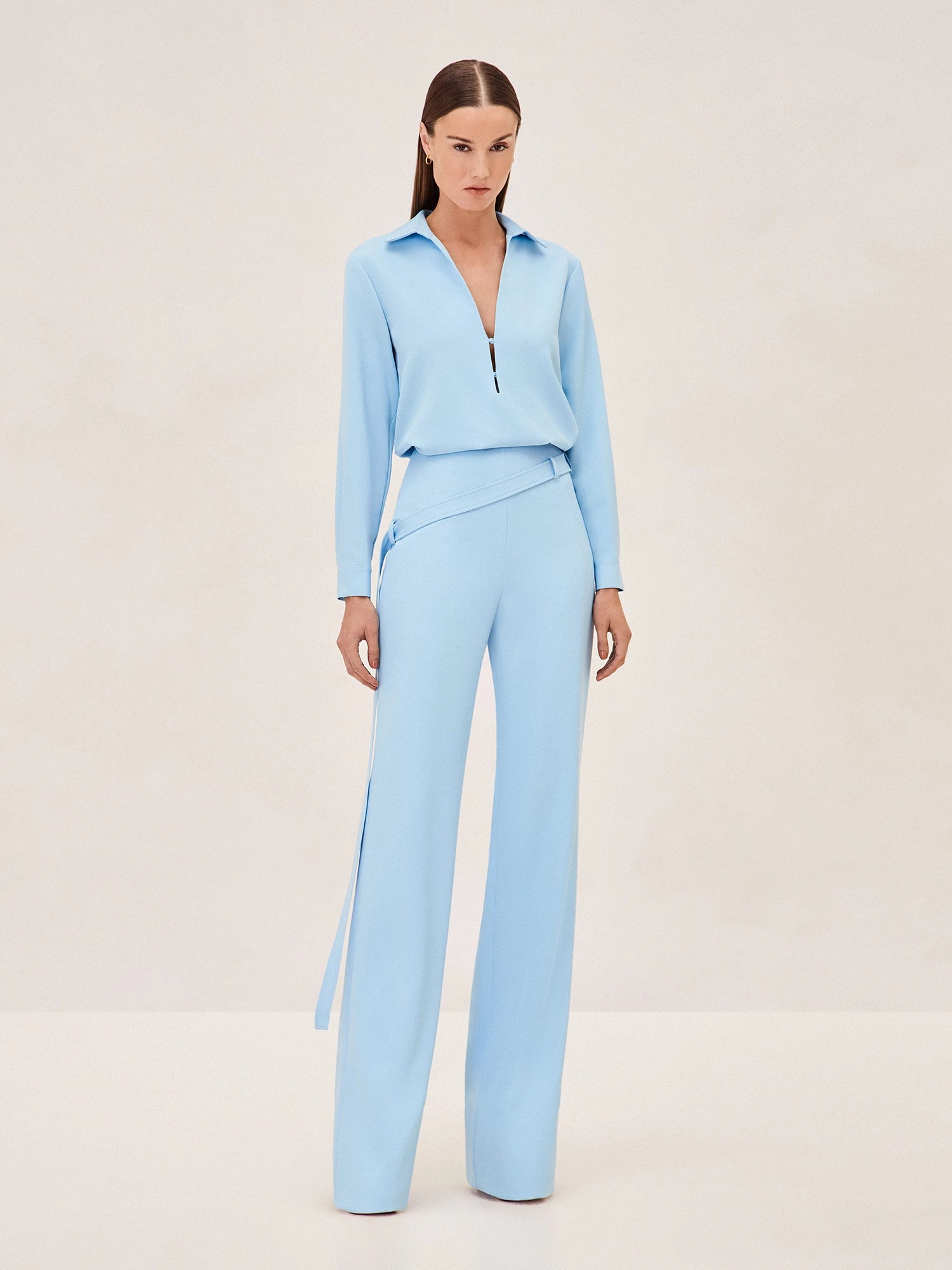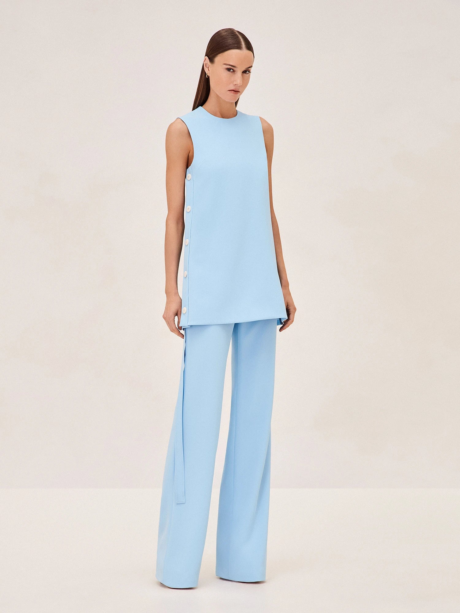 Elevate your ensemble with the Roks Pants, where tailored sophistication meets modern flair. These pants are cut to perfection, offering a flattering high-rise waist and a fluid wide-leg silhouette that promises to streamline any look. The sleek side stripe detail adds a contemporary edge. Versatile in design, they can be seamlessly paired with the structured elegance of the Morison Top or the relaxed refinement of the Libra Dress.