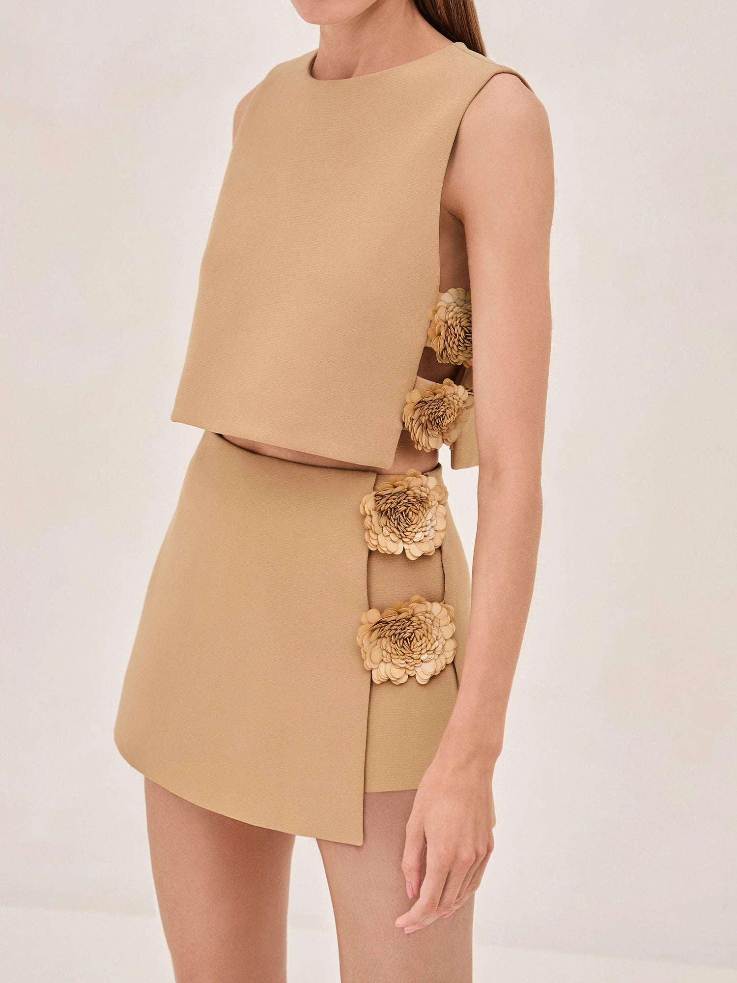 Introducing the Susie Skirt, a refined piece that combines modern elegance with a touch of feminine flair. Designed with a sleek, tailored fit, this skirt is brought to life by the delicate floral appliqués that cascade along the side, adding a subtle yet striking detail. Pair the Susie Skirt with the Raylin Top for a coordinated, chic ensemble.