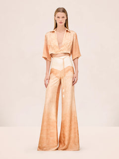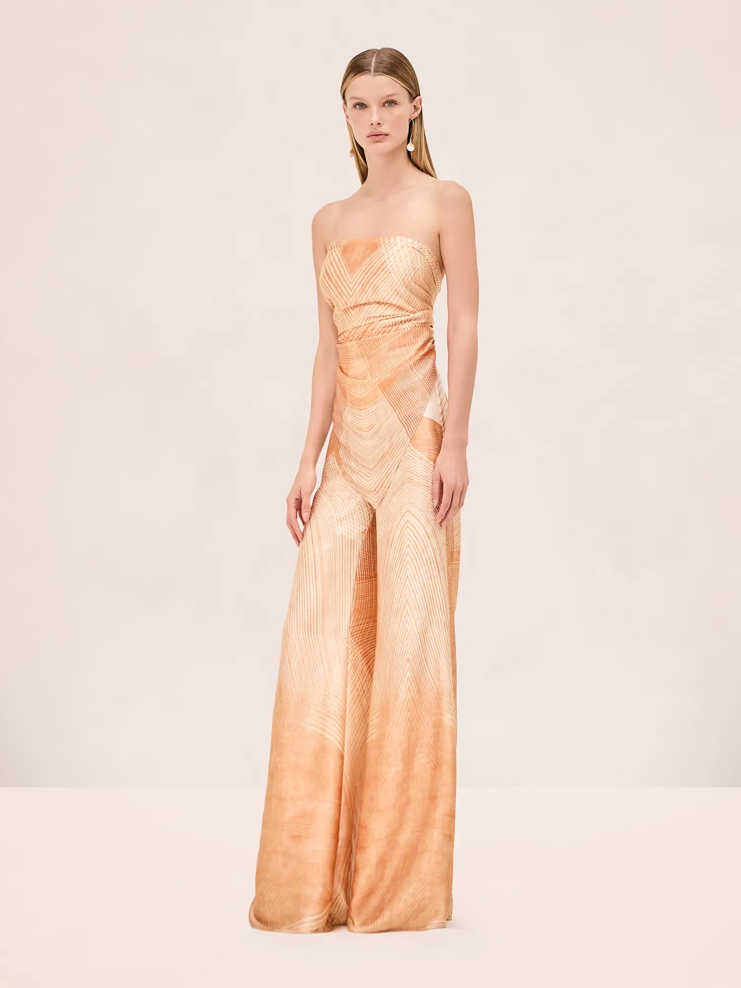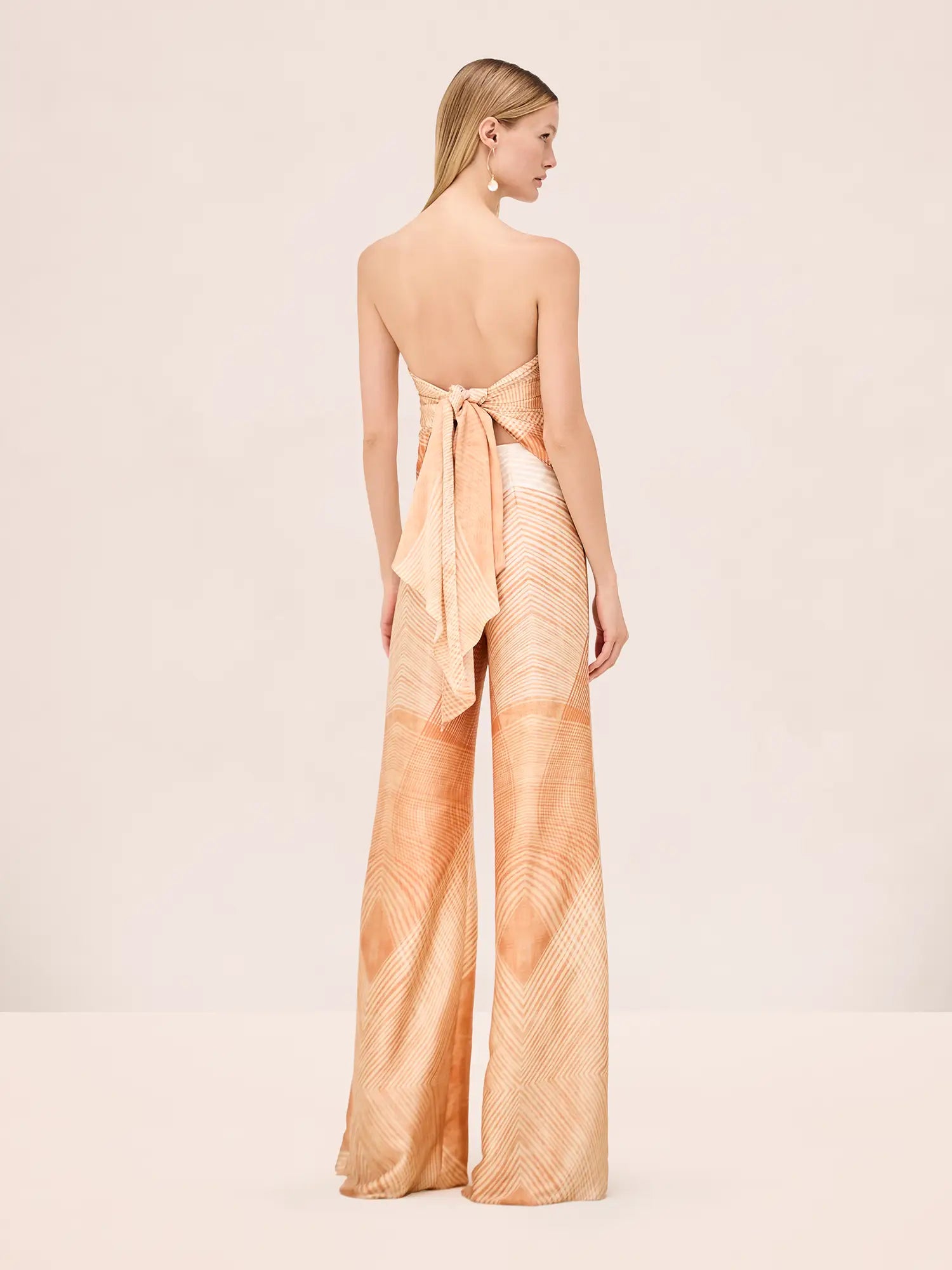 Tadi Scarf Top is a strapless scarf-style top with a soft draped neckline, paired with the Andres Pant.